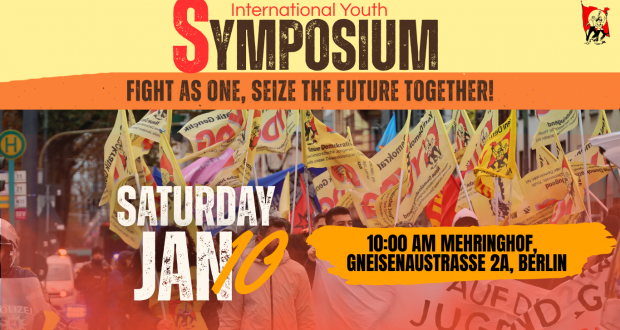 To strengthen the international youth struggle against these attacks, to share our experiences, and to organize the future together, we will hold the International Youth Symposium on January 10, 2026, in Berlin, with the participation of representatives from youth organizations from countries such as Germany, France, Turkey-Kurdistan, Bangladesh, Nepal, the Philippines, Cyprus, Spain, Ireland, Canada, Russia, Palestine, and Tunisia.
