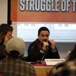 KIFAH’ın ardından söz alan Anakbayan (Filipinler, Filipinler Gençlik Örgütü), ülkenin güncel durumunu aktararak mücadelenin bölgesel boyutunu ortaya koydu. Anakbayan konuşmasında, Filipinler’in ABD destekli Marcos yönetimi altında yarı-sömürgeci ve yarı-feodal bir kriz içinde olduğunu belirtti. Yabancı sermayeye bağımlılık, artan borç yükü, düşük üretim ve kitlesel iş kayıplarının halkın yaşam koşullarını ağırlaştırdığı, iklim felaketlerinin ise çevresel talan ve devlet ihmaliyle birleşerek tarımı ve yerleşim alanlarını yok ettiği vurgulandı. Bu koşullar altında özellikle gençler ve öğrenciler öncülüğünde yolsuzluk karşıtı protestoların yaygınlaştığı ve Marcos ile Duterte yönetimine yönelik istifa çağrılarının güç kazandığı ifade edildi. Anakbayan, gençliğin işçiler ve köylülerle birleşerek ulusal demokrasi ve anti-emperyalist mücadelede belirleyici rol oynadığını vurguladı ve Filipin diasporasının da bu mücadeleyle bağlarını güçlendirmesi gerektiğini belirtti.