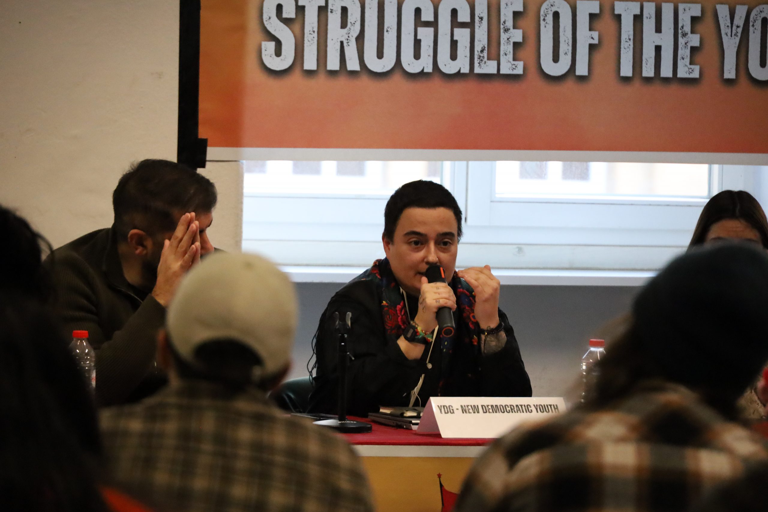 Oturumun ilk konuşmasını yapan Young Struggle (Gençlik Mücadelesi), emperyalist savaş tehlikesinin derinleştiği günümüz koşullarında gençliğin tarihsel sorumluluğuna dikkat çekti. Lenin, Rosa Luxemburg ve Karl Liebknecht’in mirasına atıfla “ya sosyalizm ya barbarlık” ikileminin bugün de geçerliliğini koruduğu vurgulandı. Filistin’de süren soykırım, emperyalist saldırılar ve Avrupa’daki baskı ortamı örnek gösterildi. Young Struggle, gençliğin anti-emperyalist mücadelede yalnızca dayanışmanın değil, kendi ülkelerindeki sınıf mücadelesinin de aktif bir öznesi olduğunu belirtti. Konuşma, enternasyonal bağların güçlendirilmesi ve devrimci mücadelenin büyütülmesi çağrısıyla sona erdi.