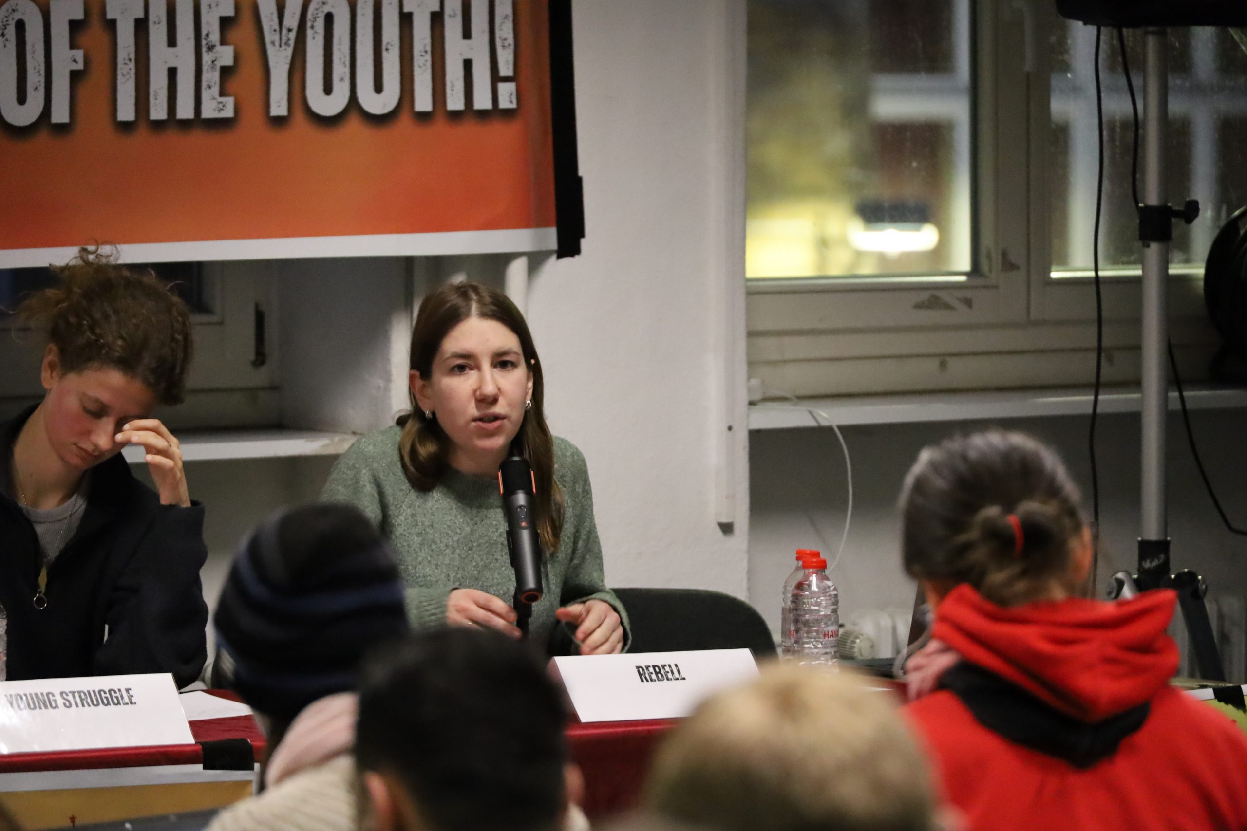 Ardından söz alan REBELL (Almanya, Almanya Gençlik Örgütü), gençliğin tarihsel rolünü Almanya özelinde ele aldı. Konuşmada, Alman işçi gençliğinin geçmişte sosyal-şovenizme ve faşizme karşı yürüttüğü mücadeleye ve Liebknecht ile Luxemburg’un antimilitarist mirasına dikkat çekildi. Günümüzde Almanya’da yeniden askerlik tartışmaları ve artan militarist politikalar karşısında gençliğin ideolojik olarak kuşatılmaya çalışıldığı belirtildi. REBELL, reformist yaklaşımlara karşı gençliği gerçek sosyalizm ve enternasyonal anti-emperyalist mücadele etrafında örgütlemenin önemine vurgu yaptı. 5 Aralık’ta gerçekleşen kitlesel protestoların gençliğin direniş potansiyelini gösterdiği ifade edilerek, 2026 yılının devrimci gençlik açısından bir sınav yılı olacağı belirtildi.