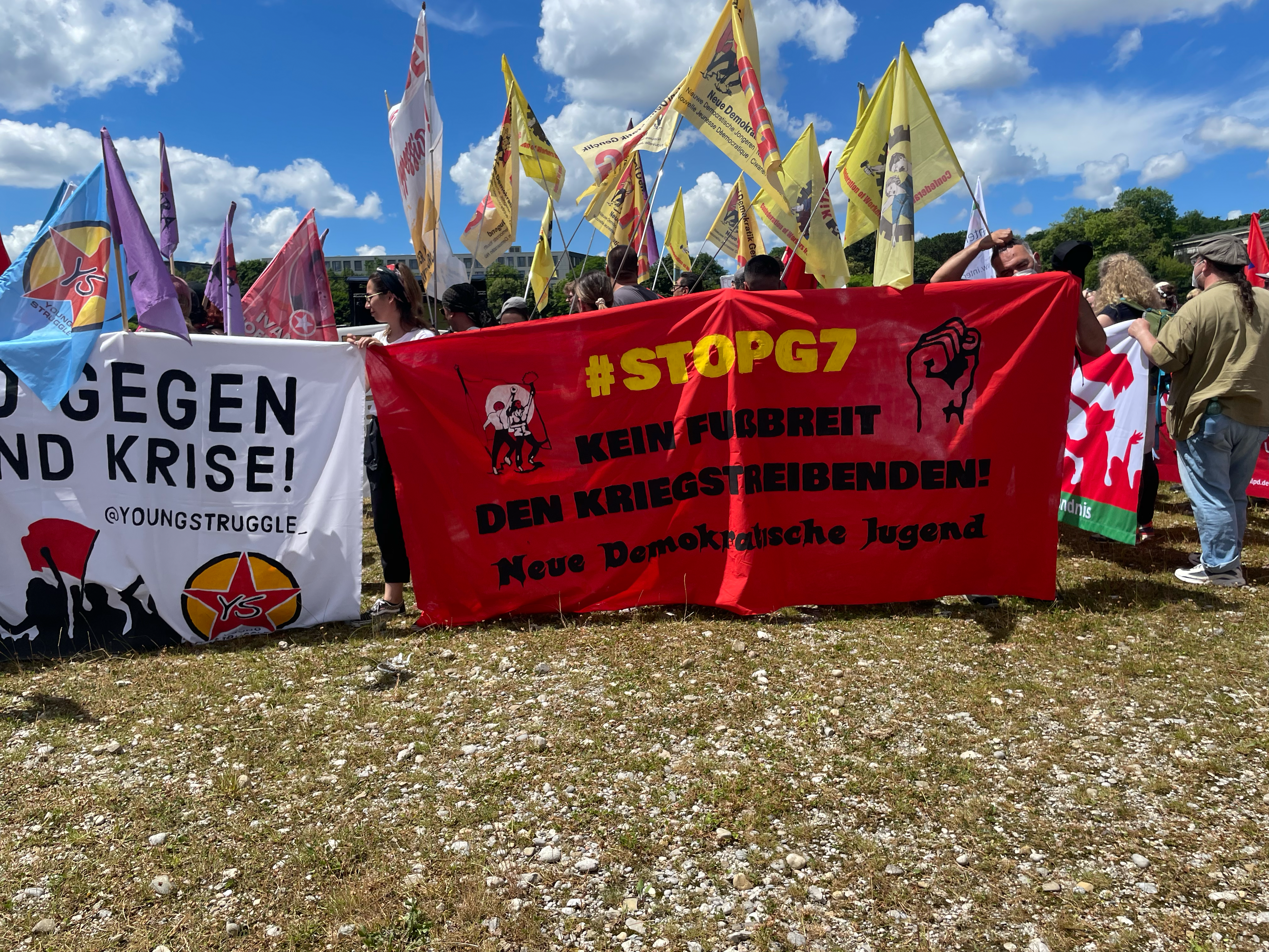 Garmisch-Partenkirchen’de “Stop G7 Elmau” Platformu tarafından 24 ile 28 Haziran arası protesto kampı ve çeşitli eylemler örgütlendi. G7 zirvesinin gerçekleştiği Schloss Elmau’a 10 km uzaklıkta bulunan Garmisch-Partenkirchen’de ilk günden beri birçok anti-emperyalist, anti-faşist ve iklim aktivisti kamp ve eylemlere katılım sağladı.