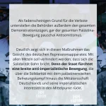 Als fadenscheinigen Grund für die Verbote unterstellen die Behörden außerdem den gesamten Demonstrationszügen, gar der gesamten Palästina-Bewegung pauschal Antisemitismus. Deutlich zeigt sich in diesen Maßnahmen das Gesicht des deutschen Repressionsapparates: Mit allen Mitteln soll verhindert werden, dass sich die Solidarität Bahn bricht. Denn der Staat fürchtet eine breite anti-imperialistische Bewegung, die über die Solidarität mit dem palästinensischen Befreiungskampf hinaus die Mittätersschaft Deutschlands und seine imperialistischen Interessen in den Mittelpunkt rückt.